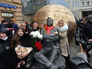 Создание памятника финансировали на собранные "всем миром" средства - родных, друзей, учеников и коллег Табакова. Создал композицию народный художник России Александр Рукавишников. На моем сайте представлено много его работ, о некоторых из них можно почитать на странице "Мастерская Рукавишникова". Открытие памятника приурочили к 85-летию со дня рождения актера.
