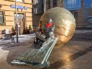 Первоначально композиция находилась "в свободном доступе" - прямо на мостовой. Каждый мог подойти к Табакову, потереть нос Матроскину, пройти сквозь шар. Но потом памятник окружили цветником. Не знаю - зачем это было сделано (может, для сохранности от многочисленных желаний его потрогать и потереть). Как по мне, так памятник немного потерял от этого - стал каким-то отстраненным.