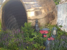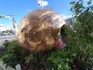 С противоположной от Табакова и Матроскина стороны "Атома" скульптор поместил накрытый стол - раки (отсыл к его малой родине - Саратову), бутылка вишневого морса (он очень его любил), и помидоры, подготовленные для засолки (актер сравнивал своих учеников с крепкими помидорами, которые подошли бы как раз для соления).