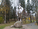 Изготовил этот арт-объект скульптор Вальтер Михайлович Сойни. Он выходец из финской семьи с трудной судьбой - на ее долю пришлись и депортация, и ссылка в Сибирь, и прочие "прелести" последствий войны СССР с Финляндией и дальнейшей оккупации Карелии Финляндией.