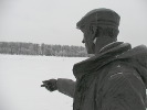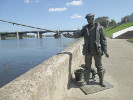 На набережной Михаила Ярославича в Твери, напротив кинотеатра "Звезда", стоит одинокий бронзовый рыбак - мужчина средних лет, в болотных сапогах, штормовке и свитере, с удочкой в руке. У его ног ворюга-кошак нагло тырит из ведра его улов.