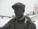 Когда я воочию увидел "рыбака", у меня возник вопрос - а зачем ему болотные сапоги? Он ведь стоит на набережной, где сухо, а не где-нибудь на берегу реки. Но оказалось, что это неспроста: иногда Волга во время весеннего половодья выходит из берегов, и "рыбак" оказывается в воде, иногда даже по пояс.